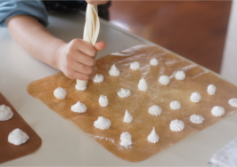 今日はレッスンがありました。窓から外を見ると、強い風、雪がちらついていました。今月のメニューの一つ”プレッツェル・メレンゲクッキー”は簡単に出来て、ついついもう一つ食べたくなる美味しいお菓子です。メレンゲのお菓子は甘くて好みの別れるお菓子ですが、甘いだけでなく塩味のプレッツェルを合わせることで、見た目も可愛らしく味も甘じょっぱくて美味しくなります。是非、作ってみて下さいね!