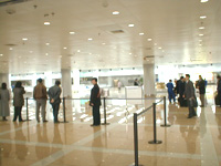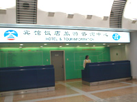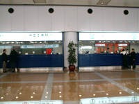 さっきと同じように国内線側に向かって歩いてみる。銀行はというと、今度は工商銀行と農業銀行である。 インフォメーションは到着フロアだけあって今度はホテル&ツアーインフォになっている。出張や旅行なんかで来た人はまずここでホテルの予約ができるんだな。確かに古い空港にもあることはあったが、あそこで聞いても本当のことを教えてくれそうになかった。(これは偏見だが)今度からはきれいなカウンターで綺麗な女性が応対してくれるようだ。