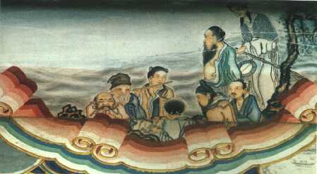 八仙の伝説では、八人が一つの物語に出てくる場合もあるし、一人だけ又は数人だけが出てくることもあります。八仙の内、一番有名なのは、呂洞賓でしょう。彼は八仙の中でもひときわ人間くさい仙人です。呂洞賓は、科挙の試験に三回落ち、俗世がいやになって漢鐘離の影響で仙人になったのですが、その関心は常に人間世界に向けられ、しばしば人間に化け、この世に降りてきて、色々なエピソードを残し、また仙界に帰っていくのです。