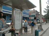 さて、電車に乗り込むとドアがしまった。と思ったら開いた。日本人のチャゲアス風の三人組が乗ってきて「東京の地下鉄と同じじゃーん」などと言っている。実際、この新線の車輌は日本と同様最新鋭の車輌を使っているのだ。運転台には液晶画面でどの車輌に何人くらいの人が乗っているかがディスプレーで見られるようになっている。日本ではこのシステムを利用して統計を取り、乗り換え用の階段を新しく作るとき、ホームのどの辺りに作ったらいいか等を決める時の参考にするそうだ。まあ、北京で統計を取るかどうかははなはだ疑問だが。 「王府井」駅に停まると、北京テレビのインタビュアーが乗ってきた。W氏にもマイクを向けたが、外国人と言うと、さーとマイクを引いてどこかに行ってしまった。「なんでやねん?」 この新線は途中から地上を走る。終点の1つ前の「四恵」駅からは地元民らしき人が乗ってきた。この一団はまず終点の「四恵東」駅まで行って逆向きの電車に乗り換えるつもりだったのだ。ところが「四恵東」駅は対面式フォームになっていて、一旦外に出なければ反対側の電車には乗れない。文句を言うと、駅員は「一旦外に出て切符を買って乗れ」と言う。「どういうことやねん。新しい地下鉄ができたと言うからわざわざ高いお金を出して乗ってやってるのに!」、「天安門に行くんだよ。また2元払えっていうのか。」等と口々に捲し立てる。とうとう駅長が出てきて、今回は2元払わなくても反対側の電車に乗っていいことになって、一見落着。いやーごねてみるもんですね。