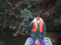 この日の亀山は減水が激しく座礁ポイントが数多くありバスちゃんも水深数十センチの所にいたりして見えバスが多かった!! この見えバスがくせ者でこいつを釣ろうと思ってもなかなか釣れないのは分かっていてもなぜかがんばってしまった^^; 結局おいらとまっち君は水深1m〜3mぐらいの所で釣っていた。 KOUは努力の甲斐あり見えバスゲット。 まぁみんな釣れたので良しとしよう。 でも釣ったパターンがみんな違う・・・? |