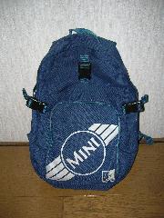 左の写真は、当時Mini生誕40周年を記念して作られていた販促グッヅのデイパックである。