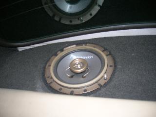 下の写真は、特になんの加工もせず取り外した純正カバーをナカミチのスピーカーに取り付けた状態である。