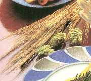 | ☆ 原 料 | 原料は、主原料=大麦・ホップ、副原料=お米・コーンスターチなど。酒税法で決められているらしい。そして、忘れてならないのが美味しい水。水がまずくては台無し。 当然、厳選した材料でつくる。 大麦=二条大麦。まるまるとした、見るからに健康そうなもの。麦芽にして原料に。ビール特有のいい香りと味のもと。 ホップ=ビールのあの苦みと香りのもと。つるののびる多年生植物で、花には雌雄があって、ビールには、受精していない雌の花だけが使われる。 |