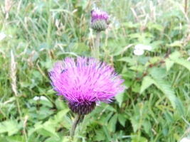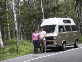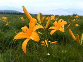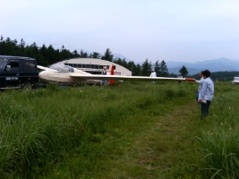 夏休みがこれから始まる7月下旬、美が原はニッコウキスゲが満開、珍しいグライダーの滑空準備などを見ながら足元には高貴な色、紫のアザミ、白樺林のドライブでは愛車も入れてパチリ。