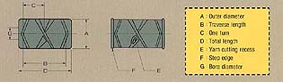 | Drum No. | Out dia. | Trav. | Pitches | Total Length | Step edge | Yarn cutting | Package shape |