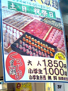 大人1850円 小学生1000円 土日祝日のみPM3:00〜PM11:30 制限時間90分 |