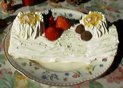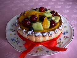 キュイエールで囲んで、上にたっぷりのフルーツ
