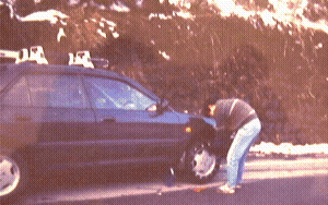 氷ノ山(ひょうのせん)スキー場の駐車場にて。