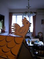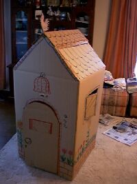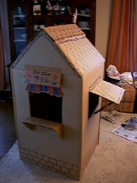 使用済みダンボール箱を、開いて表裏に組みたて、 切りこみをいれて出来あがり。