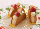 433 苺のオムレット 春のフルーツ、苺を使ったオムレットです。ビスキュイにたっぷりのクリームと苺がよく合う、シンプルですが美味しいケーキです。 | |