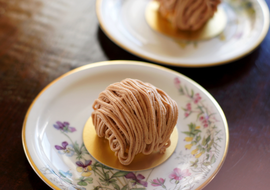 栗のクリームが最高に美味しいモンブランです。お店で売っているモンブランは甘すぎると感じるので、いかに栗の風味を最大限に引き出し、甘すぎない美味しいクリームが出来ないかと試行錯誤を繰り返して出来たレシピです。この時期にだけ出回る生の国産栗とフランスのマロンクリームをブレンドしたとっても美味しいモンブランです。このお菓子専用の口金を使って絞る作業も楽しいものです。