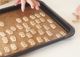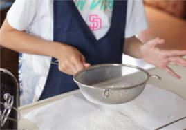 沖縄に行くと色々なメーカーが様々なフレーバーのちんすこうを販売していますね。このお菓子のレシピを作るにあたって、新垣のちんすこうを沖縄より取り寄せして、大きさや形、味を研究しました。型があるといいのですが、適当な型が売られていないので、手で成型することにしました。それっぽく出来たときは嬉しかったです。本日も皆さん綺麗に作成してくれました。