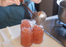 今日もレッスンがありました。今月のメニューの一つ、林檎とバニラのコンフィチュールは5年ぐらい前に作成したレシピで、いつかご紹介したいと思っていたメニューです。紅玉の林檎の皮の色を生かして、綺麗な色のジャムに仕上げていきます。林檎の個体差によって、仕上がりの色味は薄くなったり濃くなったりしますが、どの色も自然な色で美しいと思います。バニラビーンズをたっぷり加えてちょっとリッチな季節限定のジャム、ヨーグルトに入れても美味しいです。