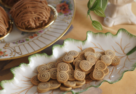 今日はレッスンがありました。本日お見えになった生徒さんは今月のサブメニュー、”渦巻きシナモンクッキー”を台湾で買ってきてプレゼントして下さった生徒さんでした。この小さくて薄いクッキー、食感に特徴があります。サクサクした一般的なクッキーではなくて、歯ごたえがあって固いのです。頂いた本場のものは、カリッとパリンとしているというか、そんな感じでしたが、レッスンでご紹介しているものはちょっと食感が異なりますが、出来るだけ近づくように努力して作成したレシピです。素朴でちょっとクセになる感じのシナモン香る焼き菓子です。