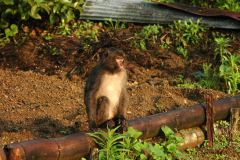 | 6月27日(火) 今朝も窓をたたく雨の音で目が覚めた。 やっぱり梅雨、今日も雨かぁ、と思っていたら 8時を過ぎる頃、雨はぴたりと止み太陽が顔を出す。 それと共に来なくて良いのにムッとする湿気も一緒にやって来た。 こりゃたまらん、と9時過ぎ車に乗って新宮までお買い物。 本宮の方は晴れていたのに新宮に近づくにつれて 霧というかもやというか周りの視界が悪くなってき、 ポツリポツリと冷たいものも落ちて来た。 この雨すぐに上がったが相変わらず見通しは良くない。 手っ取り早く買い物を済ませ本宮に帰ってくると暑〜い! 雨もいや!暑いのもいや!ましてや寒いのはもっといや! 人間ってどうしてこんなに勝手なんだろう。 6月24日(土) 梅雨の中休みか、朝から薄い雲は広がっているものの 時折青空も広がり雨の気配は全くない。 気温も若干低め、湿気はあるが梅雨の時期としては過ごしやすい。 来週まで客はないので、最近はもっぱらホームページをチェックしたり アルバム、データベースの整理をしたりしている。 本当なら車であちこち行ってみたいんだけど昨今のガソリンの高騰と 梅雨空でなかなか外に出て行けない。でも体にカビが生えないように この梅雨が明けたら、気分転換もかねてブラ〜っと出かけてみようかな。 6月21日(水) 今日は夏至、暦通り厳しい暑さの一日。 明日から梅雨に逆戻り、と言ってるが本当カイナ?? レントゲンを撮ると言うので親爺を町内の診療所へ連れて行く。 親爺にとっては今年二度目の外出、普段家の中に籠もっているので 足元がおぼつかない。診療所に着いて椅子に座ろうと思ったら そのまま後ろにひっくり返って「痛て〜っ」。言わんこっちゃあない これからはもうちょっと外に出て鍛えた方が良かないか? 6月19日(月) 暑〜い! 部屋の温度計が30度を超えた。でも周りが土のせいか 朝晩はまだ過ごしやすい。 今日も裏の木にエテ公達が大挙押しかけて来た。 窓から顔を出して追い払おうとすると一旦は慌てるようだが こっちが見てるだけと分かるとこちらの様子を伺うように立ち止まる。 声を出してもなかなか立ち去らない。頭来た!完全に舐められとる(`´メ) こうなったら新兵器を導入して立ち向かうしかないと早速パソコンの前に座る。 オークションで対抗手段を検索、あった!即、入札。 ムフフ・・・これが来てから後悔してももう遅いぞ! 6月16日(金) ![]() 昨日丸々一日降り続いた雨も 今日の夜明けにはすっかり上がった。 久々の太陽に誘われてか 早朝から裏の畑や柿の木に サルが群れとなってやって来た。 畑を荒らされないように「コラー!」と叫ぶと 一斉に「モン!キー!!」と けたたましい声を上げながら裏の林に消えてゆく。 何日かに一回繰り返されるこの光景、 以前は姿を見せなくとも気配を感じただけで逃げていったのが 最近ではこちらをじっと睨んでからおもむろに林の方へ去ってゆく。 あかん!なめられとる!今度一回ガツン!といわしたろ。 6月15日(木) 予報通り朝から雨。間断なく、時間と共にその激しさは増してくる。 昨日のうちに買い物済ませておいて正解。 てなわけで今日は一日中家の中から窓の外を眺めることに・・・。 午前中、やらなければと思っていたタンスの中の衣替えを実施。 これで秋まで大丈夫、虫も食ってなく何とか着れそうだ。 雨のせいか外は静か、鳥の声もあまり聞こえてこない。 今日は自然も人間界もお休みの一日と言うことか。 6月14日(水) ![]() 本格的な梅雨の前の束の間の晴れ、 雲一つない、すがすがしい朝、 空気も朝晩はまだ涼しい、 久しぶりに朝の散歩に出かけると 行く先々の道端でささゆりが 可憐な花を咲かせて迎えてくれる。 明日から雨が続くというので その前にGパンの替えを買いに新宮まで出かけた。 せっかくだから上着もと新宮市内の店をあちこち駆け回る。 が悲しいかな生来のファッションセンスの無さから どれを買って良いものやらさっぱり分からん。 マネキンに着せられた服装を見、これいいなぁと思って 試着してみるとボタンがはめられん!裾が殿中状態になって はいている長さよりすそ上げする長さの方が長くて話にならん。 こんなはずじゃあなかったのにと少なからずショックを受けながら ふと前を見るとどっかのおっさんがこちらを見てる。 おまえ誰じゃ!?・・・。 鏡の中に悲しい現実を見た。 いくら食べても太らず、スポーツに汗を流していた好青年は”今は昔の物語”。 だぶついたお腹に張りのない肌のおっちゃんがそこにいた。あ〜やだやだ・・・。 結局自分では決められず、ユニクロに行って かっこいいお兄ちゃんにコーディネイトしてもらう事に。 自分一人だったら絶対選ばない服を選んでもらって帰途につく。 これでしばらくはもつかな? 6月13日(火) 驚天動地、茫然自失、意気消沈、 抜け殻となった我が身はホタルと共に暗闇の中をさまよい歩く。 多くは語るまい、布団の中で悶々とした時を過ごしながら前後不覚。 明けても天気は我が心と同じくはっきり