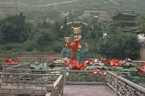 午前中は、蘭州の観光だ。まず甘粛省の博物館に行った。ここの3つの有名な展示物の一つのマンモスの骨格は何らかの理由で見ることができなかった。しかし、豊富な彩陶は健在で、その展示の列を抜けると武威の雷台で発見された副葬品の『銅奔馬(とうほんば)』又の名を『馬踏飛燕』が展示されている。これは躍動感にあふれた天馬が、その足下に空を飛ぶ燕を踏みつけている構図で、日本語で「飛燕を凌ぐ馬」と言われている。私は、この馬の像がスキだ。見ていると元気が出てくる。粗末なものだが、前回に出土地の雷台で買ったレプリカは、部屋にも飾ってある。気分の落ち着かないときなど、このレプリカを見ながら、広い空を縦横に走り回る天馬になったつもりで、リラックスしてみたりする。こういう、人生の宝となるような芸術品にあえるのも旅の楽しみだ。