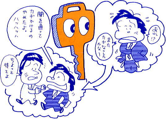 また、カギに部屋番号や名前を書いた札をつけることは、紛失したときに