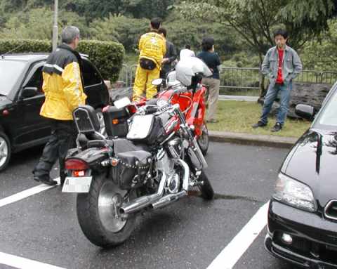 集合場所には、バイク2台(築田,大ア)、車4台(清水,小川,辻本,足立)。
