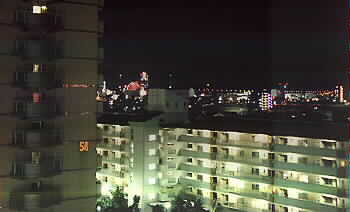 立体駐車場に最上階は野外になっていて、そこから周辺の夜景を見ることができます。周りに高層マンションが建っているため、少し視界は悪いのですが、それでも遠く天保山の観覧車や梅田方面の灯りを見ることができます。
