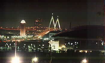 舞洲アリーナと此花大橋。遠くに見えるのはORC200