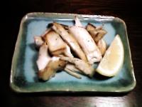 あわび茸は、あまり風味はないが、バター、レモンの香りを足すと、こりこりした歯触りが酒の肴に向く。