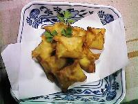 - オリーブオイルを暖め中火で揚げる。(揚げる前に塩・コショウ少々)