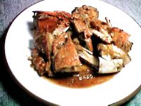- ワタリガニは甲羅をはずし、身の部分を食べやすい大きさに切る。足も使う場合は、出刃包丁で足を割っておく。