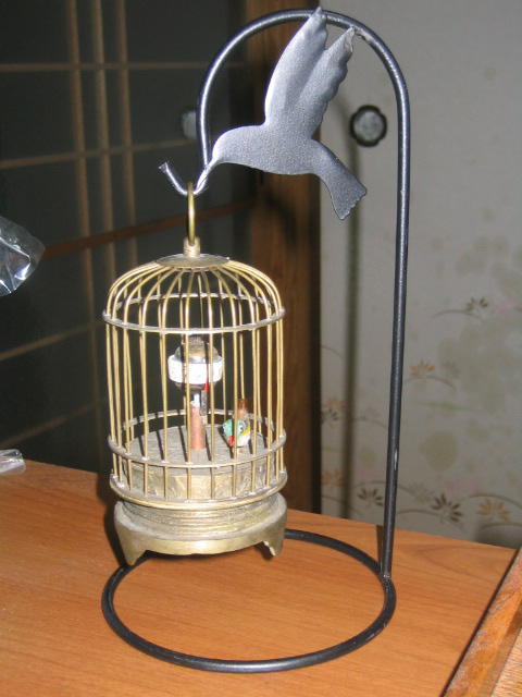 緑の小鳥が秒針で、左右に揺れます。
