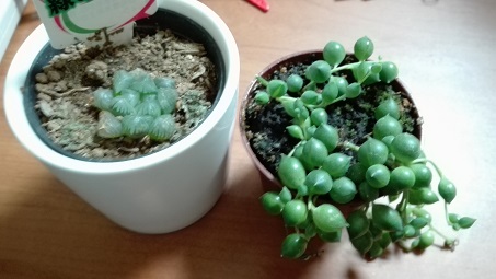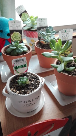 | 11月14日(月) タニク~ラブ・ちょっと追記 先日、植え替えをした我が家の多肉植物たち。 あのときあまりにちっこかったので買ったときのままにしていたハオルチア・オブツーサ。 こちらもちょっぴり育ってきたので、本日植え替えました。 ![]() 前回、グリーンネックレスを植え替えたのと同じ、100円均一の植木鉢。こちらの真ん中にぷっくりと(^^) 現在、パソコン横の棚の上に置き、いつでも眺められて幸せ(^^) このハオルチア・オブツーサ。どこまで大きくなるかはわからないけど、キラキラぷくぷく可愛く育て~\(^0^)/ |