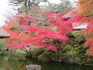 | 11月22日(火) 京都散策・その1 先週、京都に行きました。 関西在住だけど、京都にはあまり行ってない方だと思います。 小中学校の遠足は、兵庫のお山か足を伸ばしても奈良。 修学旅行も、奈良京都は近すぎるからか行くところじゃなし。小中高と修学旅行は、伊勢、夏の長野、冬の長野でした。 というわけで、京都に行くようになったのは、比較的最近。 友人と泊まりで行ったり。ママンと日帰りで行ったり。 今回は、阪神、阪急の電車に乗れる株主優待券が今月末までだったので、ママンとふたり、日帰りで行ってきました。 目指したのは、清水寺。実は行くのは初めてです(^^ゞ 阪急電車で河原町まで行って、そこからは徒歩。 ガイドブックの地図を頼りに、まずは駅から八坂神社までてくてくてく。なかなかの人通りです。 八坂神社の中に入って舞殿をめざし、その真横にある南楼門を出て、さらに真っ直ぐ歩きます。 途中、目当てのお店がありました。 ガイドブックに載っていた、親子丼が有名なひさご。ここでお昼をいただこうかなーと。 ですが、午後2時だというのに、けっこうな行列。 さすがは有名店!! お昼時からはちと外れてたので、楽々入れるかという甘い期待は、ただ甘かっただけでした(^_^;) 諦めて、別のお店を探すことに。 ひさごからさらにてくてく。道のあちこちにある案内地図も確認しながら、一年坂にはあっさり到着。 あとは道なりに二年坂、産寧坂を上っていきます。 途中、素敵なお庭を見かけました。 京コスメ、よーじやの横にあって、自由に入れます。もちろん入ってみました(^^) ![]() このお庭の見事だったこと!! 池のある日本庭園で、かやぶき屋根の小屋も素敵です。 池には鯉が泳ぎ、水面に姿を写す紅葉がまた素晴らしい。 真紅、橙、黄金色と、グラデーションになっているのは、計算されたものなのでしょうか。 とにかく見惚れてしまいました(^^) このお庭、よーじやさんともう1軒、ちょっとレトロチックなカフェにも面してました。 広々としたカフェの窓からは、庭園の姿もよく見えます。 入り口に回ってみると、カフェはガイドブックにも載っていた、豪華な朝食でも有名なイノダコーヒでした。 こちらはお客さんの入りもほどよく、庭園に面した窓際の席も空いてました。 ここでいただいたのが、洋食のセット(^^) ![]() パン、ハンバーグ、エビフライに、とろっとろの目玉焼きとサラダもワンプレートに載ってて大満足! サラダについたハムがまた美味しかったこと。 朝食セットにもハムがついてて、茅ヶ崎のハム工房から取り寄せてるとガイドブックにあったけど、それと同じハムなのかしらン? とにかく美味しかったです。 食後のコーヒーもさすがの美味。 これらを素敵なお庭を眺めながらいただけたのですから、もう大満足でした!! たかだか日帰りの数時間でしたが、ちと長くなってしまいました。 というわけで、続きます。 次回は、旅の本命。清水寺です(^^ゞ |