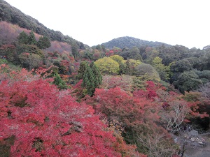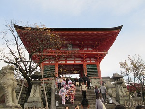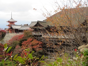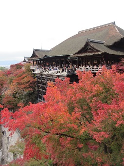 | 11月23日(水) 京都散策・その2 先週、京都に行きました。 ママンとふたり、日帰りでの清水寺観光。後編です。 イノダコーヒで、素敵な庭園を眺めながらのランチをいただき、お腹はいっぱい。鋭気もいっぱい。 再び坂を上ります。 清水寺へと続く参道の産寧坂は、観光地として有名です。 店の左右にはお土産物屋さんや飲食店が並んでいますが、道自体はあまり広くありません。場所によっては、ふたりがすれ違うので精一杯の道幅だったりします。 急な坂もあり、混雑してるところもありで、時々お土産物屋さんに入ったり、小さな寺院にお参りしたりして小休止をしてました。 ![]() そして到着した清水寺。 山門は割りと普通かな? ただ、山門前にあった馬駐に、馬に乗ってた時代から多くの参拝者で賑わっていたのだろうなと感じさせられました。 ![]() 境内に入ると、眼下に広がるのは紅葉した山林の景色。 ここまで坂を上ってきた甲斐もあるというものです!! ![]() お参りをして、順路に沿って歩いていくと、こんな景色も見えました。 ![]() 観光ガイドには必ず載ってる、あの『清水の舞台』です! 高い柱に支えられた本堂は、素晴らしいものでしょう。それが周囲を紅葉に彩られているのですから、さすがに見とれてしまいました。 通路から視線を移すと、こちらも山の紅葉が綺麗。 ![]() 有名な音羽の滝は、滝の水を飲むと御利益があるとのことでしたが、長い行列ができていたのでパス。 本堂の下まで進むと、清水の舞台を見上げられ、こちらも大迫力でした(^^) ![]() それにしてもこの高さ。「清水の舞台から飛び降りる」なんてことわざがありますが、いわれは昔願掛けで実際にここから飛び降りた人がいたからとか。 すごいなぁ……(^_^;) 帰りはもと来きた道を戻り、再びてくてく歩きます。 河原町で、京佃煮と京菓子の老舗、永楽屋に寄って、寒天菓子のセットを買って帰りました。 この寒天菓子、琥珀。 以前、『先生のおとりよせ』 すっごく気になっていて、おとりよせしようかと思ったのですが、梅田大丸に店舗が入っていたのでそちらでゲット。 以来、大のお気に入りです。 河原町の永楽屋さんはさすがに本店だけあって、おまんじゅうやおはぎといった、大丸店にはなかった商品も多数あります。 この日は目当ての寒天菓子のセットに、季節商品の『紅玉』もゲットしました。 商品用意とお支払いで待ってる間に、お茶を出していただいたのがまた嬉し(^^) しばしの間、まったりくつろがせていただきました。 ![]() いじょっ。秋の日帰り京都旅行記でした(^^) この旅のきっかけになった、阪神阪急の株主優待券は、半年に1回送ってもらえます。 次は春に、下鴨神社にでも行こうかなと、計画中です(^^ゞ |