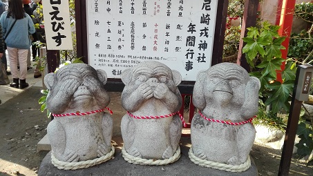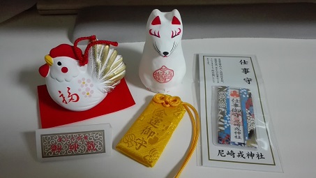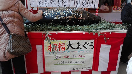 | 1月10日(水) 今年もえべっさん(^^) 「商売繁盛で笹もってこい」のえべっさん。 七福神の一神恵比寿様をお祭りする祭事です。 1月9日が宵戎(よいえびす)。10日が本戎(ほんえびす)で、11日は残り福。 本戎の今日、いつもの尼崎戎神社にお参りに行きました(^^) 昨年のえべっさんは、成人の日を含む土日月で、私が行った本戎もものすごい人出でした。 だけど今年のえべっさんは、宵戎こそ成人の日の月曜日だったけど、あとは平日。 この日も昨年ほどは混んでいませんでした。 それでもさすがに本戎。 お昼過ぎに着いたのですが、お参りをする本殿までは長蛇の列。ママンとふたりで列の最後尾に並び、両サイドに居並ぶ露天を眺めながら、お参りができるまで30分ほど待ちました。 並んでいる間に、あれこれ写真も撮りました。 ![]() ![]() ![]() これでも去年よりは楽チン。去年のお昼頃は、行列は3倍以上の長さでしたので(^_^;) 私たちが本殿に着いたとき、中でちょうどご祈祷のお神楽が始まったところでした。 巫女さんの舞いを眺めつつお参りし、次に目指すは境内に鎮座しました大マグロ。 ![]() 今年もみっしりお賽銭を貼りつけられていました。 私も5円玉をぺたり。 おみくじ引いて、お守りとご祈祷狐。福鈴もいただきます。 ちなみにおみくじは大吉でした(^^) ママンは末吉だったのですが、『anan』の占い特集に書かれていたのと、かなり内容が一致していたとか。 言われてみれば、私もそうかな? かなりいい内容だったので、どうか当たりますように(^^) ![]() 神社内にあるお狐様のお納め所でもある社もお参りし、本年の参拝も無事果たすことができました。 ![]() こちらが、ママンがいただいた福笹と、私がいただいたお守りさんたち。 今年も1年、よろしくお願いいたします~(-人-) |
