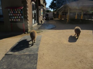 このとき、ちょうどおうちに帰るカピバラさんたちとすれ違いました。ラッキー♪