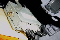 サーフの年式が違うのでうちのも同じだといいなと思いながらセンターコンソールを開けマルチAVステーションを外しアンテナケーブルらしき線をたどっていくと、センターコンソールに向かって右側、フレームの外にアンテナセレクタらしき物を発見。このボックスに入ってくるケーブルを抜くとTVが映らなくなるのでこれがアンテナセレクタなのは間違いなさそう。しかし残念ながらこのボックスへ入ってくる信号線はピンジャックではなく平たい3ピンのコネクタだった。